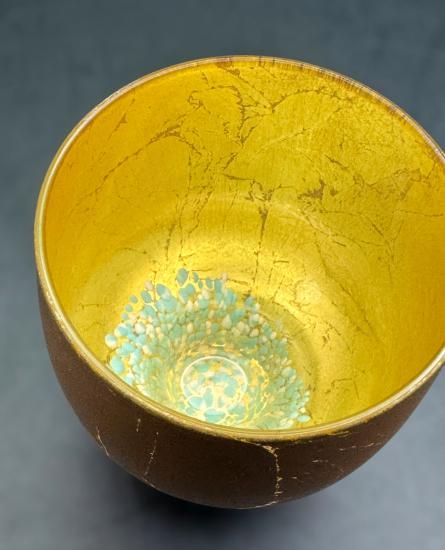 T-67 ビードロ お猪口 深小鉢 ゴールド 箔貼り Beidoro Sake cup small deep bowl gold gilded