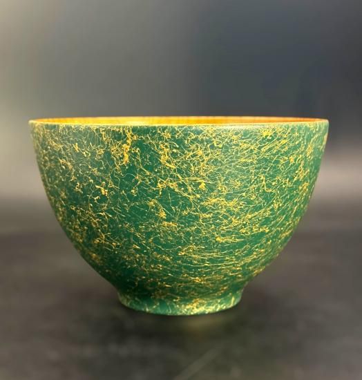 蓋付ボウル 沈金 竹 マジョグリーン Covered bowl Sink Gold bamboo majogreen