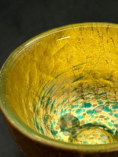 T-168 ビードロ お猪口 深小鉢 ゴールド 箔貼り Beidoro Sake cup small deep bowl gold gilded