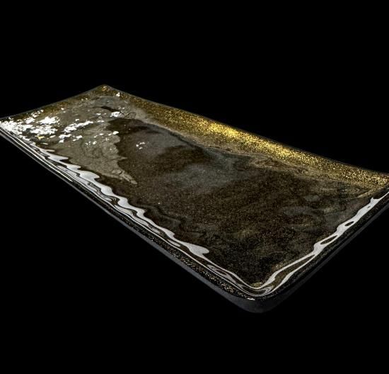 長皿 SIZUKU 梨地 漆黒(銀箔・金箔) Long dish Shizuku Nashiji jet black (silver leaf・gold leaf)