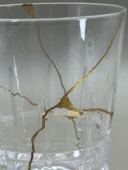 ロックグラス クリア 金継ぎデザイン Rock glass, clear Kintsugi designs
