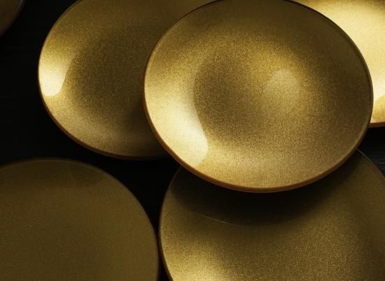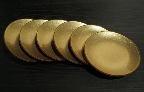¼¬ÅÉ¥´¡¼¥ë¥É´Ý¾®»®6Ë祻¥Ã¥È Set of 6 small round plates with maki-nuri gold