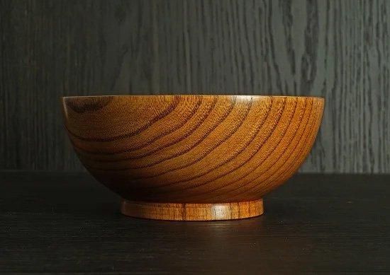 無垢の木をロクロでくり抜いた器に、伝統の塗り技法で意匠付けし、