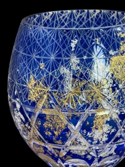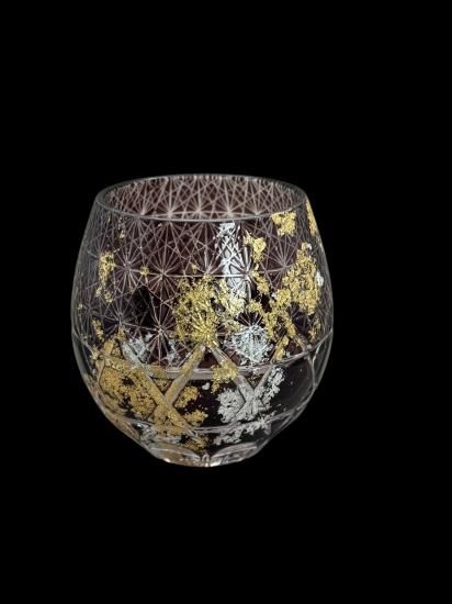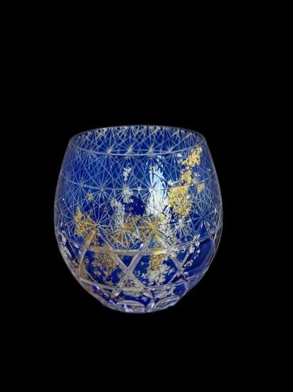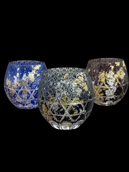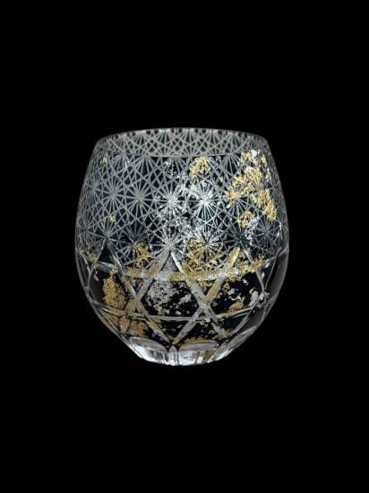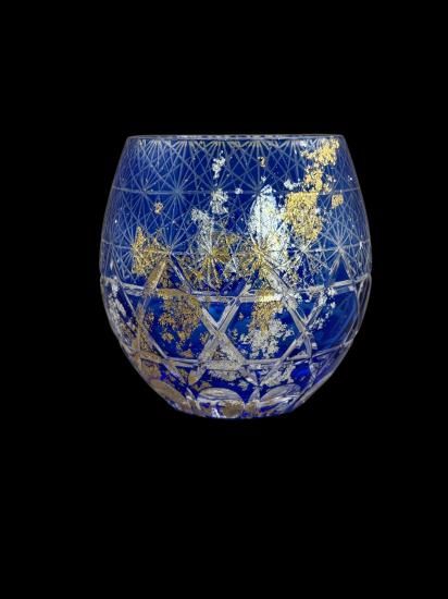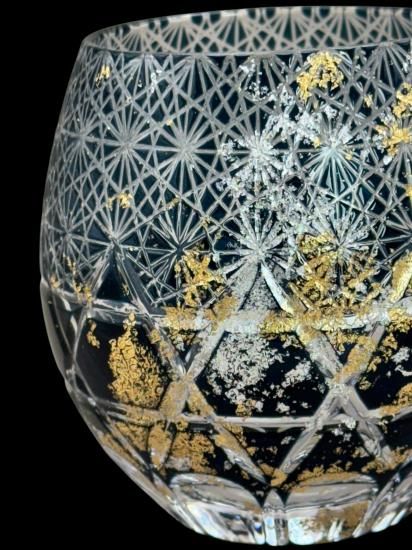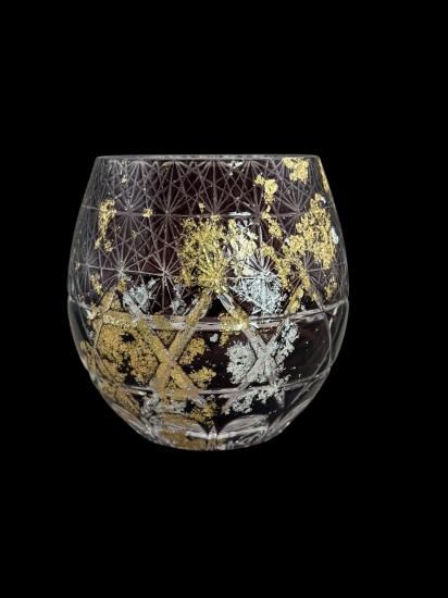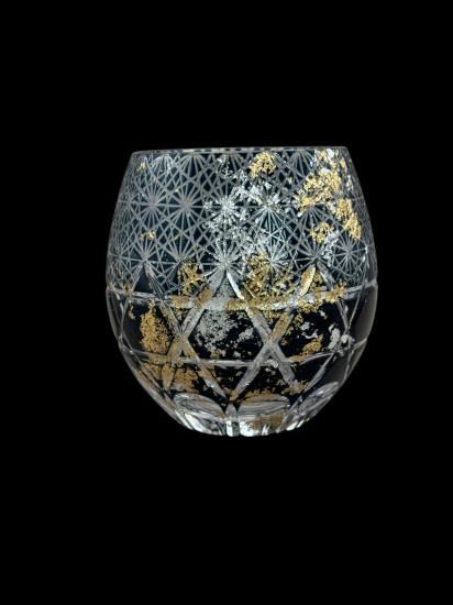 再度磨き上げ金箔銀箔を散りばめた美しく暖かみのある切子ガラス製品です。