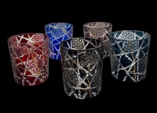 ÀÚ»Ò¥°¥é¥¹014¡¡¶â·Ñ¤®¥Ç¥¶¥¤¥ó¡Ê5¿§¡Ë¡¡Cut glass Kintsugi designs (5 colours)