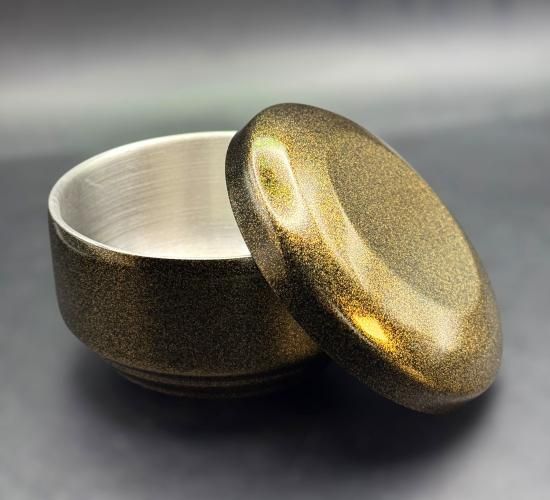 The gold dust of the nashiji powder makes the shape shimmer at various angles and
