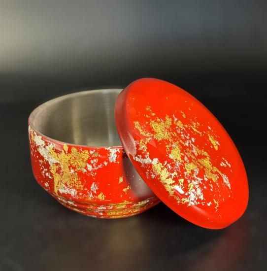 There is a traditional lacquerware technique that creates a pattern resembling tangled threads. However, there are no longer any workshops that can perform this technique. At Fujii Lacquerware Workshop, we have recreated this technique on our own.